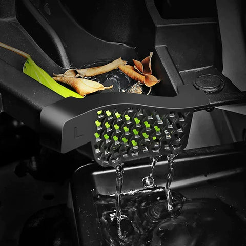 New Tesla owners may not know the front drain channel on the trunk of the Tesla is very easy to collect debris such as dirt, leaves, etc., which blocks the drain channel and causes water to flow back and not drain properly. These drain plugs keep debris out of your front trunk, saving your Tesla from standing water. Use these anti-clogging cover vents from TESEVO to effectively prevent debris from clogging the front trunk drain channel of your TESLA!