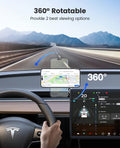 - 【Small & Flexible】Just the right size! Say goodbye to Tesla phone mount that obscure the speedometer! The car phone mount won't take up space in your car or obstruct your view. With a flexible 360° ball joint, the car mount allows you to use your smartphone horizontally or vertically.